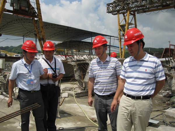 為嚴(yán)防各類重特大事故的發(fā)生,確保企業(yè)質(zhì)量、安全生產(chǎn)工作繼續(xù)保持良好的發(fā)展態(tài)勢(shì),7月9日至13日,集團(tuán)公司副總經(jīng)理劉明洪、總工程師覃炳賢分別率領(lǐng)檢查組,深入路橋總公司靖那高速公路1標(biāo)、航務(wù)處陽鹿高速公路№.5、6標(biāo)、路建公司馬平路№.1標(biāo)、長(zhǎng)興公司那平二級(jí)公路№1標(biāo)等直屬單位在建項(xiàng)目,進(jìn)行工程質(zhì)量、安全生產(chǎn)檢查,并親切慰問辛勤奮戰(zhàn)在項(xiàng)目一線的員工。