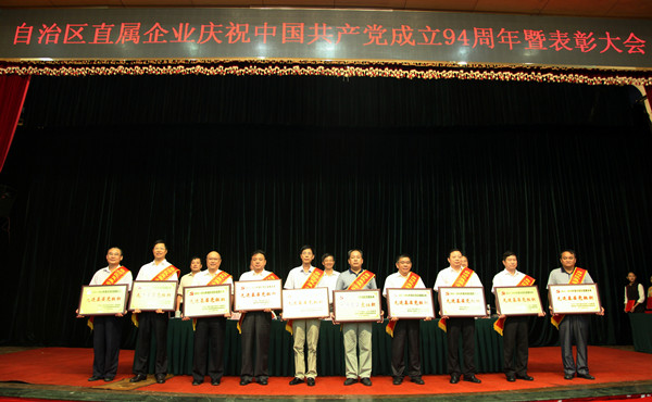 6月26日,自治區國資委在邕召開直屬企業慶祝中國共產黨成立94周年暨表彰大會,表彰了一批2011—2014年度自治區直屬企業先進基層黨組織、優秀共產黨員和優秀黨務工作者,集團公司共有廣西路橋工程集團有限公司黨委等6個基層黨組織、符國迎等5名共產黨員、曹文海等4名黨務工作者受表彰。
