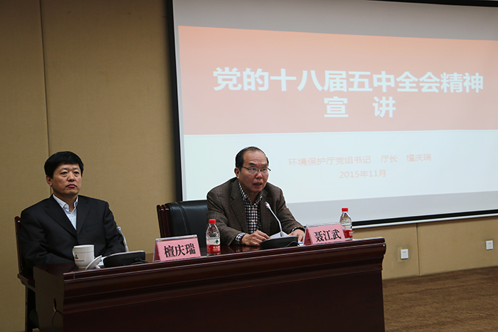 自治區環境保護廳廳長檀慶瑞作宣講,自治區國資委副主任、黨委副書記、巡視員聶江武主持宣講會。