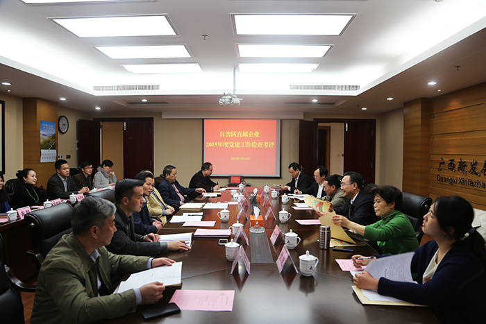 3月24日,自治區國資委2015年度黨建工作考評小組對我集團公司2015年度黨建工作進行實地檢查。自治區國資委副主任王曉華帶隊開展檢查考評,我集團公司黨委書記、董事長朱堅和在迎檢分工會上作黨建工作情況匯報,集團公司在家領導以及相關部門人員參加會議。