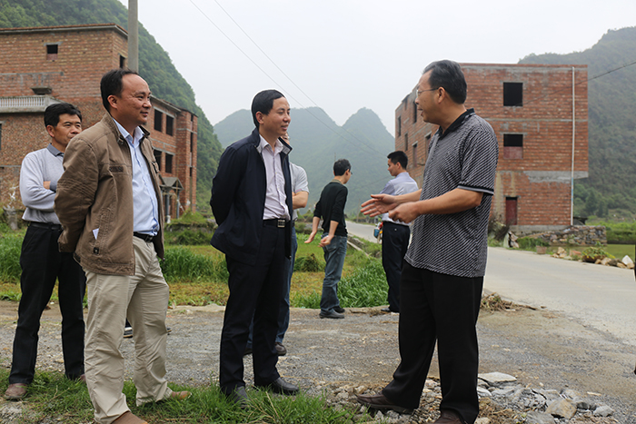 4月14-15日,集團公司黨委委員、總工程師覃炳賢一行深入集團公司結對扶貧的環江縣明倫鎮基層農村調研。環江縣常務副縣長李萬峰、明倫鎮鎮黨委書記李偉軍及縣鄉有關部門同志陪同。