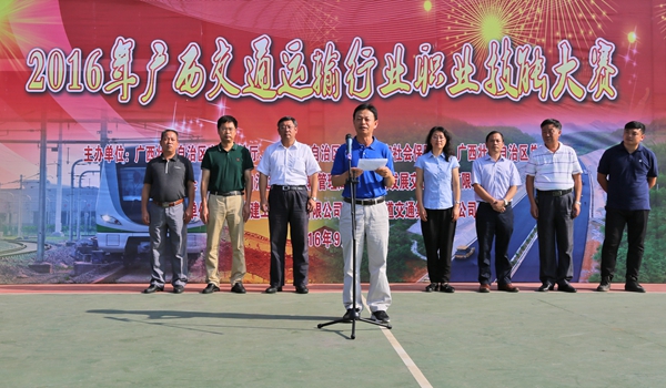 自治區交通運輸廳總工程師王劼耘在2016年廣西交通運輸行業職業技能大賽開幕式上致辭
