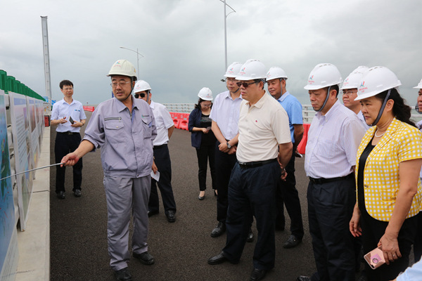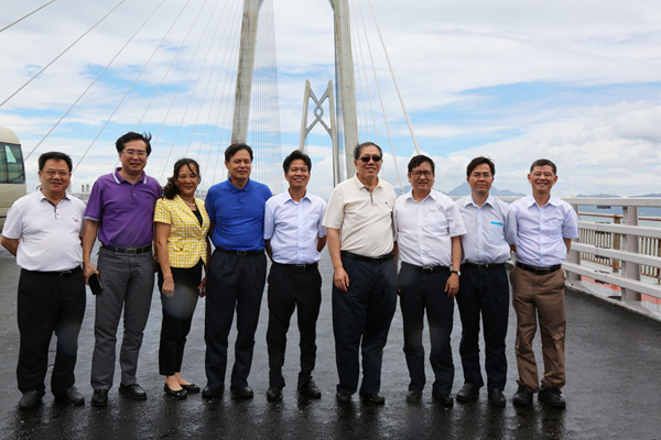 近日,廣西新發展交通集團黨委書記、董事長朱堅和陪同自治區人民政府副主席陳剛視察港珠澳大橋工程項目。陳剛副主席對港珠澳大橋工程項目施工質量表示稱贊。