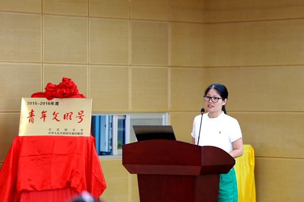 隨后,交通運輸廳團委阮夏恒書記宣讀共青團中央聯合其他21個部委下文的《關于命名2015—2016年度全國“青年文明號”的決定》。宣讀完畢后,團區委青年發展部部長助理張弛、交通廳團委書記阮夏恒、集團公司黨委副書記張友坐、設計院公司黨委書記周錚共同為“青年文明號”揭牌。