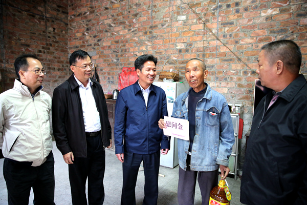 在環江縣明倫鎮,朱堅和董事長、張友坐副書記一行先后到集團公司駐村“第一書記”工作的環江縣明倫鎮豹山村、相堯村、才帛村開展走訪慰問活動,與駐村“第一書記”開展座談會深入交流,實地了解脫貧攻堅各項工作開展情況,同時走訪慰問了當地困難群眾,為他們送去了慰問金和油等生活用品。