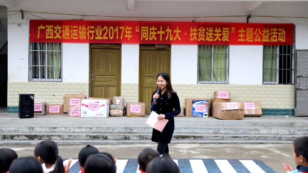 11月10日,集團公司團委組織青年團干赴羅城縣東門鎮(zhèn)德音村小學參加共青團廣西壯族自治區(qū)交通運輸廳委員會組織的廣西交通運輸行業(yè)2017年“同慶十九大•扶貧送關愛”主題公益活動。