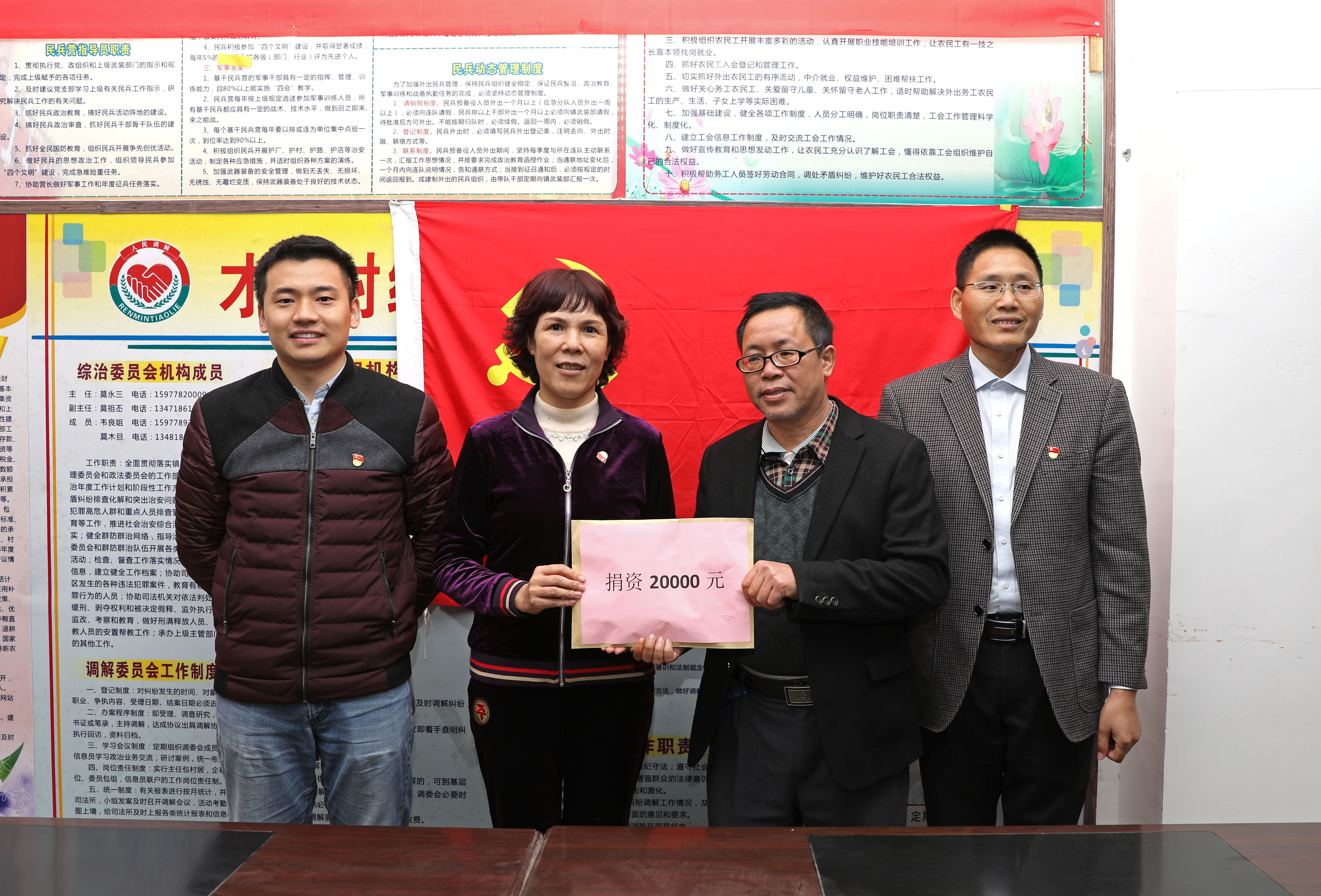 圖為翔路公司黨委向環(huán)江縣明倫鎮(zhèn)才帛村捐款2萬(wàn)元用于修建垃圾焚燒爐