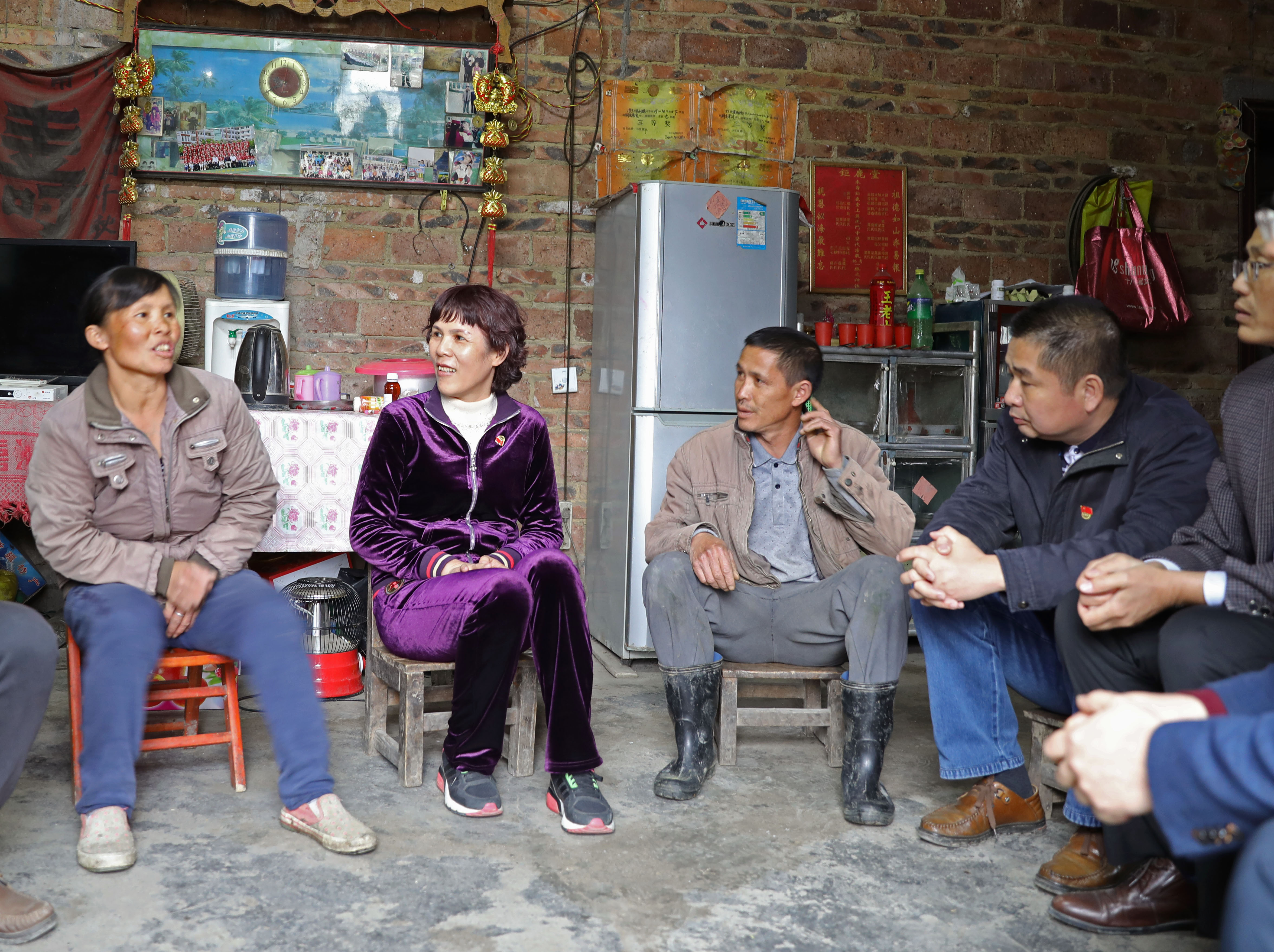 圖為翔路公司扶貧工作組負(fù)責(zé)人入戶了解貧困戶生活狀況