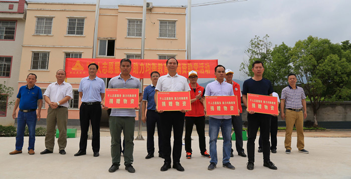 與會領(lǐng)導(dǎo)向受捐贈學(xué)校捐贈物質(zhì)