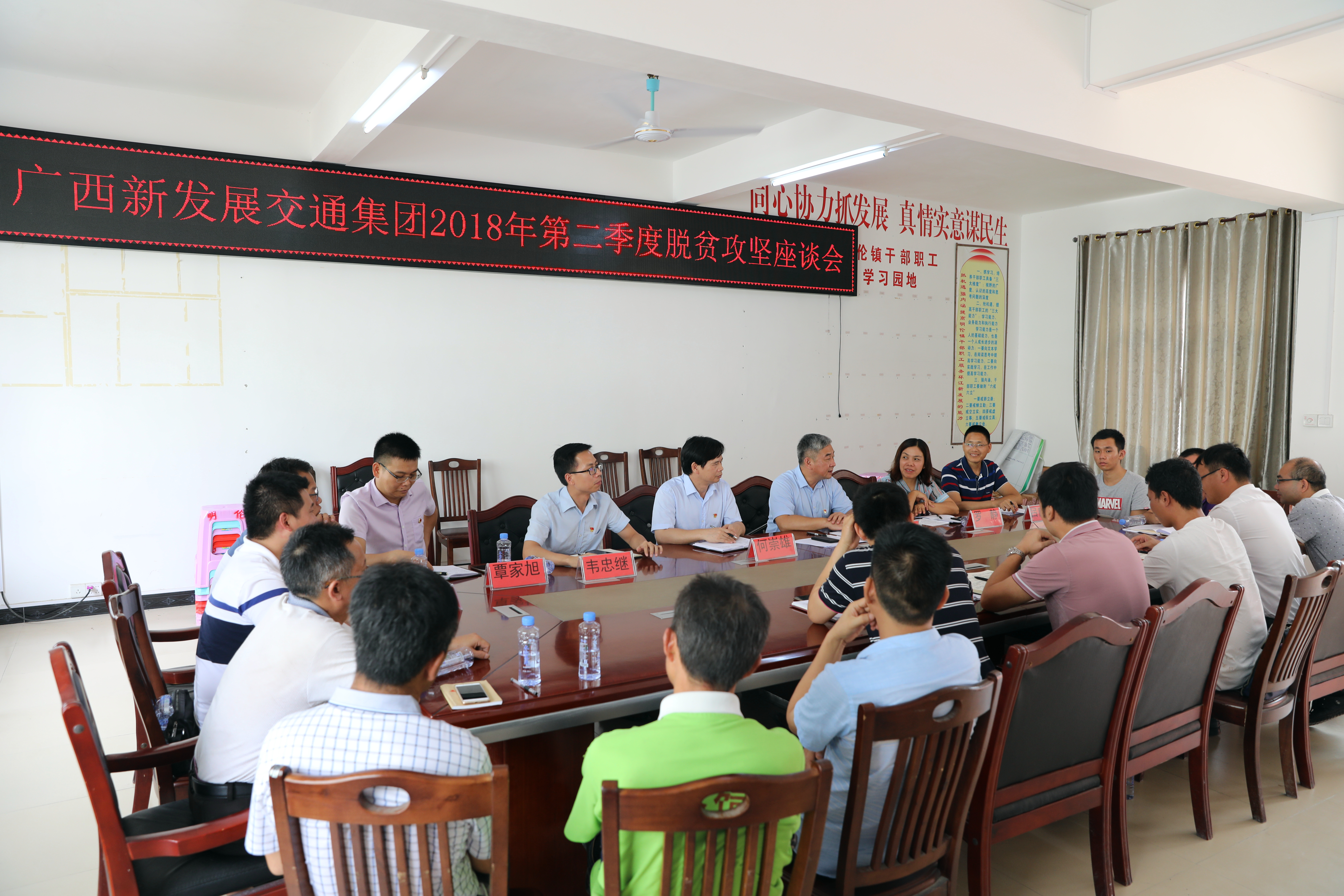 環(huán)江毛南族自治縣明倫鎮(zhèn)黨委書記莫譚剛簡要介紹了鎮(zhèn)情及脫貧攻堅基本情況,并衷心感謝集團(tuán)公司對明倫鎮(zhèn)的真幫實(shí)扶。座談會后,后援單位主要負(fù)責(zé)人與駐村第一書記進(jìn)一步深入交流,關(guān)心他們的工作、生活和身體狀況,并為他們加油鼓勁,希望他們繼續(xù)保持干勁,確保按時保質(zhì)保量完成脫貧任務(wù)。