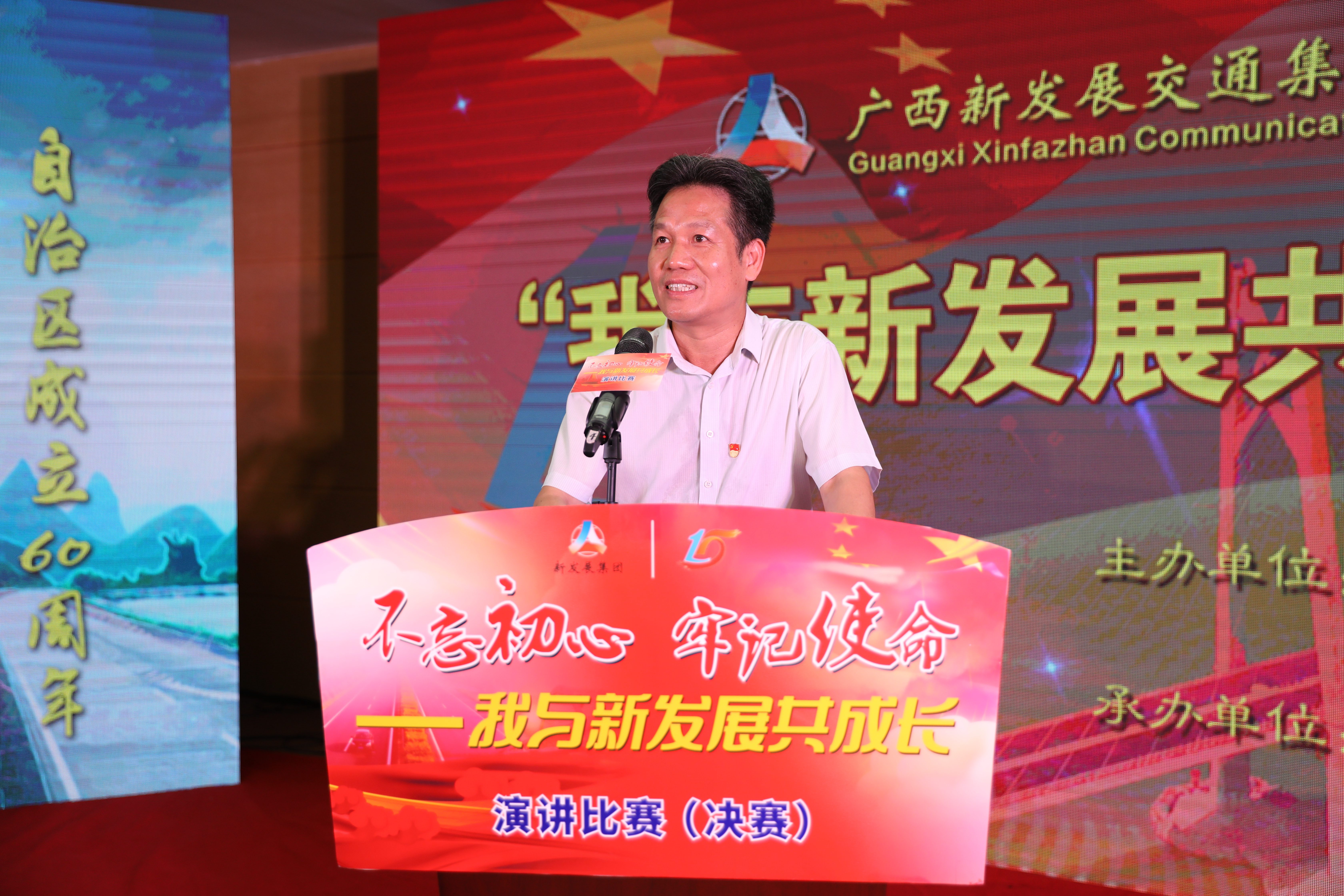 為深入學(xué)習(xí)貫徹落實習(xí)近平新時代中國特色社會主義思想和黨的十九大精神,以扎實的成效迎接改革開放40周年和自治區(qū)成立60周年,近日,廣西新發(fā)展交通集團舉辦“不忘初心、牢記使命——我與新發(fā)展共成長”主題演講比賽。8月16日,決賽在南寧成功舉辦。 來自12家直屬企業(yè)的38名選手經(jīng)過所在單位的層層選拔推薦和集團公司的初賽復(fù)選,最終有12名選手晉級決賽。集團公司黨委書記、董事長朱堅和出席決賽活動,并致開幕辭。