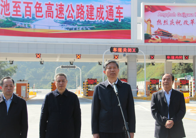 11月28日,河池至百色高速公路正式建成通車,自治區副主席費志榮到場祝賀并進行致辭。