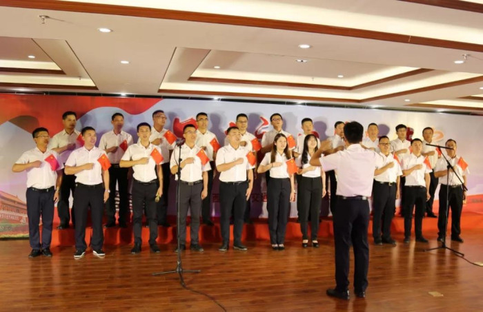 新發展集團黨委書記、董事長賴水平致開幕辭。他指出,在全黨深入開展“不忘初心、牢記使命”主題教育之際開展紅歌比賽,是在新發展集團新的征程上的一次再集結、再承諾、再宣告,旨在教育廣大黨員進一步堅定理想信念,增強為民服務情懷,強化使命擔當,為新發展集團高質量發展貢獻力量。