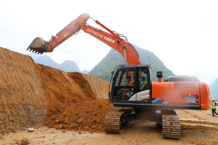 圖5:參賽選手用挖掘機(jī)修整邊坡