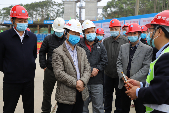 3月5日,自治區交通運輸廳副廳長王劼耘到大塘至浦北高速公路項目開展防疫及復工復產工作情況調研。自治區交通工程質量安全監督站站長陳津維、自治區高速公路發展中心主任周北、欽州市政府副秘書長黃立和一同調研。